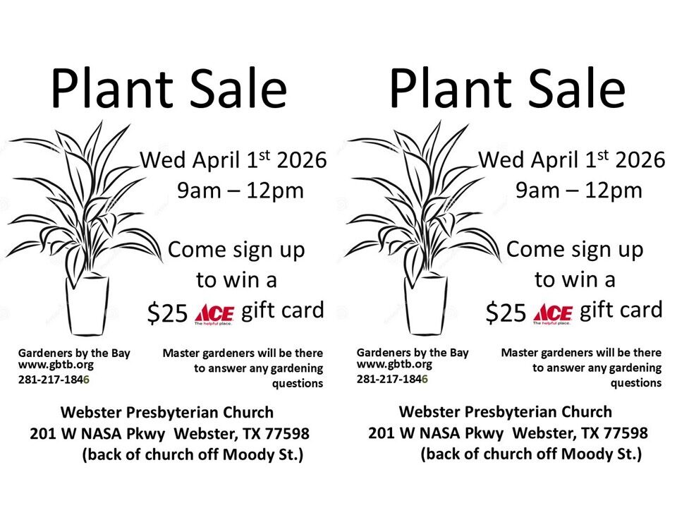 As a member of Gardeners by the Bay, you are also a member of the Houston Federation of Garden Clubs. Meetings are held second Fridays each month, September thru May, where food and hospitality is provided by local garden clubs; where programs on gardening and floral design are presented, with speakers coming from areas all over Texas; and, in addition, where you can participate in workshops on crafting, floral design, and officer training. Meetings are held at St. Andrews Presbyterian Church, 5308 Buffalo Speedway, Houston, 77005 beginning at 10:00 am. Carpooling can be arranged by contacting Leslie Wong, GBTB’s Federation Delegate, cell 281-935-6442. Please leave a voicemail.